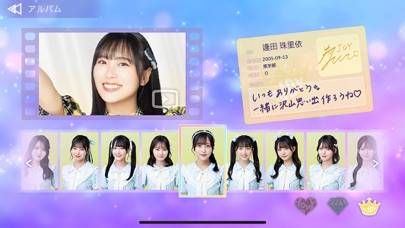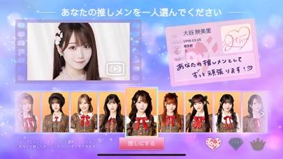 =LOVE、≠ME、≒JOYのメンバーから、推しメンを選択。それぞれの紹介ムービーやサイン、手書きメッセージが見られ、ゲーム序盤からもう大満足のボリューム感です。好きなカードが1枚だけもらえるので、よく考えて選んでくださいね。