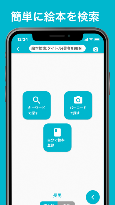 キーワード、またはバーコードで、絵本の検索ができます。探したい絵本が見当たらない場合は、タイトルや作者名を自分で入力して登録も可能。たくさん絵本を登録して、本棚を充実させたいですね。