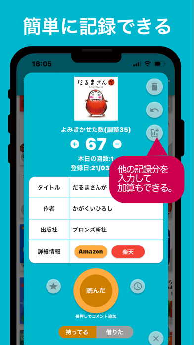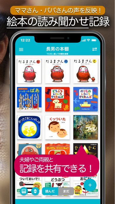 - 「読んだ」「まだ」に絵本をストック。整頓できる電子の本棚