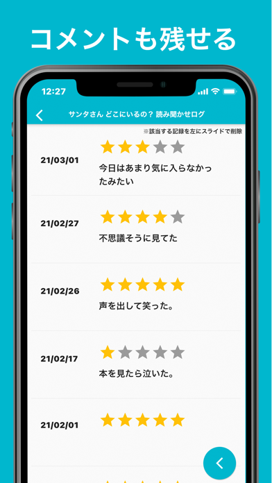 今まで読み聞かせた絵本と、子供に読み聞かせたい絵本を登録できます。子供の反応はどうだったか、読み聞かせた絵本に「ごきげん度」を星1~5で記録することが可能。お気に入りの一冊を見つけましょう。