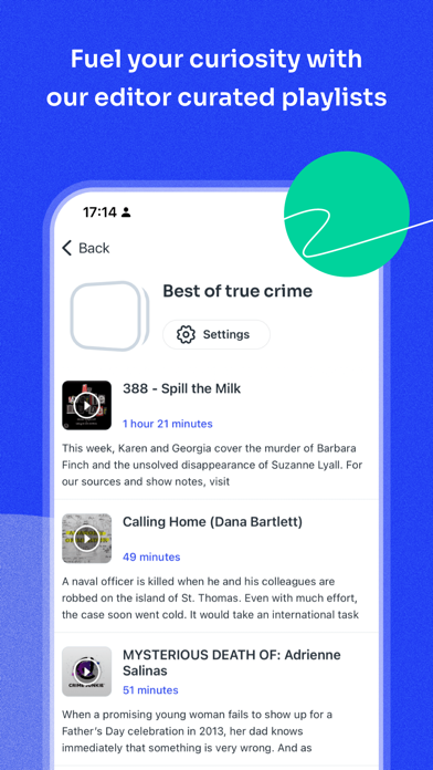 - プレイリストも作成可能。好きな回を集めて、いつでもすぐに聴き直せる