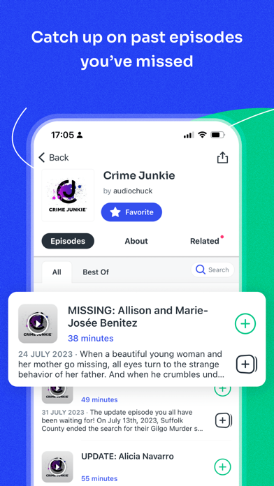 プレイリストを作って、各番組の好きな回を好きな順番で再生できます。ためになった回や元気の出る回など、ジャンルや聴きたいシーンに合わせてリストを作成可能。逐一番組ページから探さなくても、好きな回をすぐに聴けるでしょう。