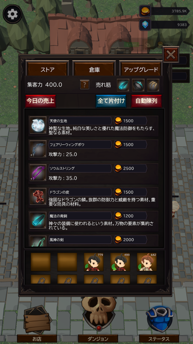 - ダンジョンで入手したアイテムを販売して人気店を目指す