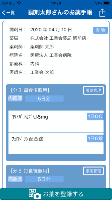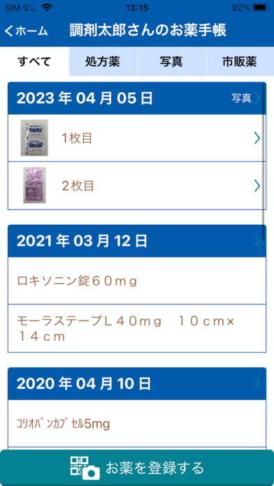 - 服用した薬を登録。薬の情報を確認しやすくなる上に、問診時にも便利