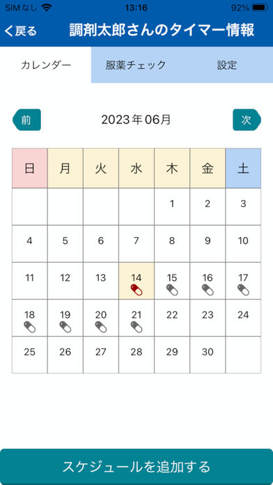 定常的に飲む薬があるときは、お薬カレンダーを使いましょう。何日から何日まで飲むのか、飲む周期や時間帯まで設定できます。