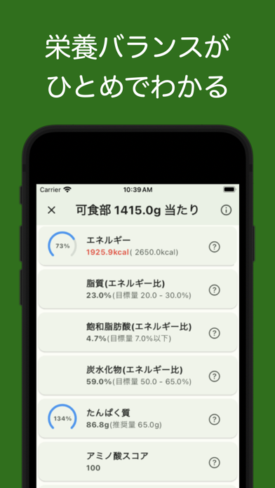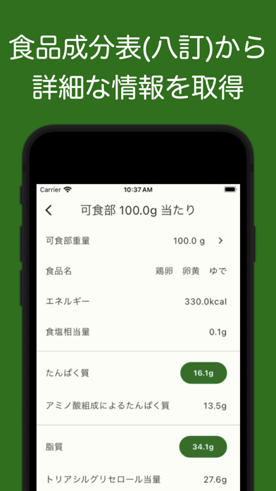 - 2,000種類以上の食品成分表データを収録した栄養計算アプリ