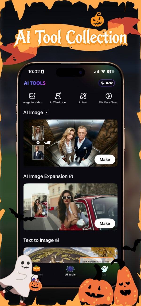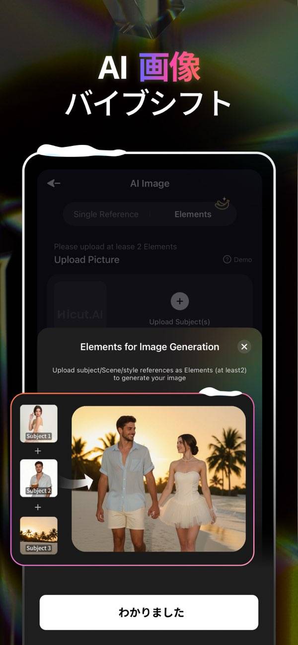 アニメーション以外にも顔写真をそのまま画像に当てはめられる機能があります。自動で顔を認識してくれて、顔交換の精度も高性能なのがポイント。生成した画像はそのまま保存したり、シェアできたりします。