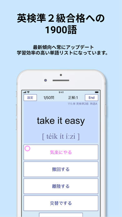 過去の英検の問題で出題された単語・熟語を収録した英単語勉強アプリ。単語のデータは随時更新されていきますが、少なくとも2,000以上の単語が収録されています。