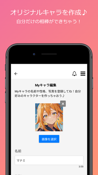 - 自分で画像や口調を入力して、推しや創作キャラのAIを作成も
