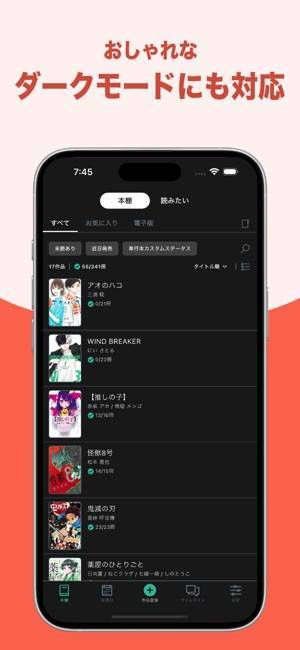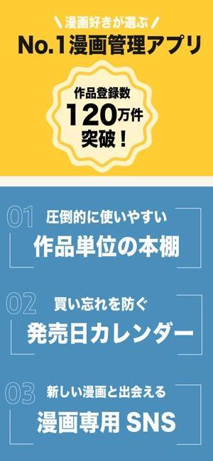 今まで読んだ漫画、読みたい漫画を登録してリスト化できるアプリです。キーワードから漫画を検索してアプリ内の本棚にサッと追加できます。