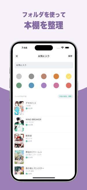 - 今まで読んだ漫画を本棚に追加。ジャンルでフォルダ分けできる