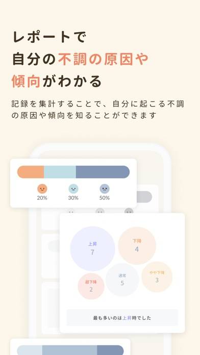課金すると、どんなとき気分が下がったか、頭痛の症状が出たかなどの分析も行ってくれます。体調の変化を管理するだけでなく、付き合っていくような感覚になれるアプリです。