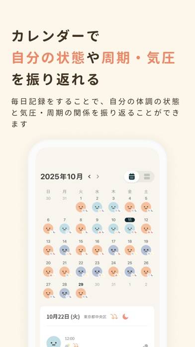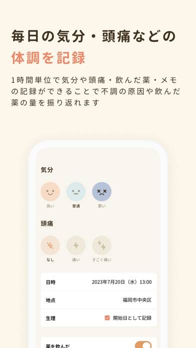偏頭痛持ちで、生理前のメンタルの不調と体調不良があります。どちらも同時に管理・予測できるこちらのアプリを見つけて愛用しております!