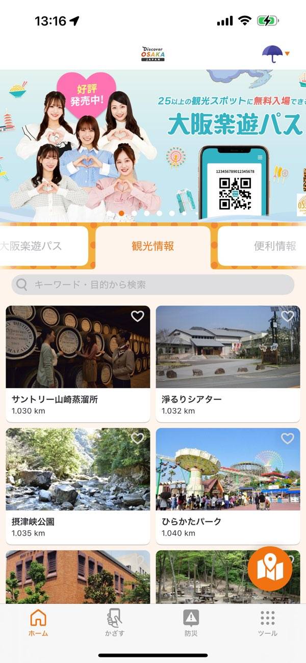 大阪の観光情報が見られる