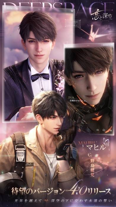 3人の見目麗しい男性が登場。光の力を使うハンターのセイヤ、飄々とした雰囲気の画家ホムラ、そして心臓外科医のレイと親睦を深めていきます。ストーリー進行で交流システムが追加され、彼らとデートが楽しめますよ。