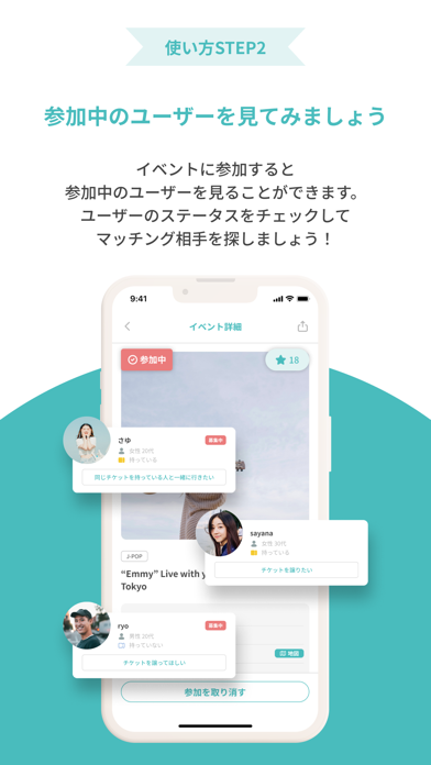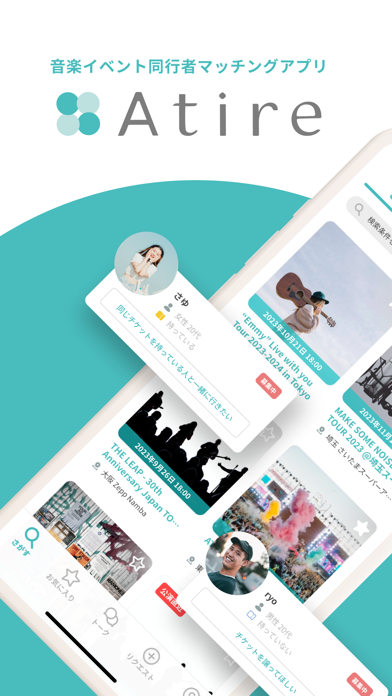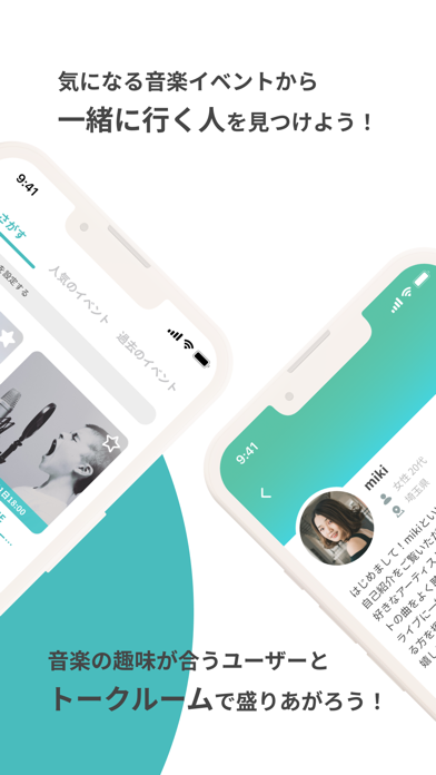 同じ音楽イベントに参加するユーザーと、マッチングできるアプリ。恋愛目的ではなく、一緒に音楽を楽しむ仲間探しを想定したアプリで、性別に関係なくさまざまなユーザーとやり取りできます。