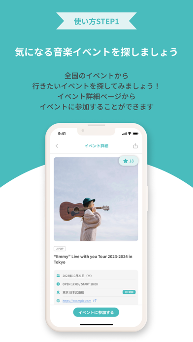 国内の音楽アーティスト主演のイベントが掲載されています。「このイベントに参加する」をタップするとほかユーザーに自分の参加を知らせることが可能。チケット予約などは別途ほかのサイトで行う必要があります。