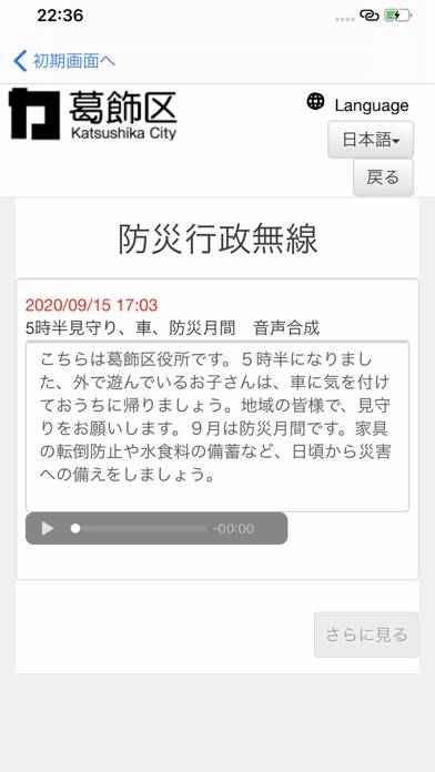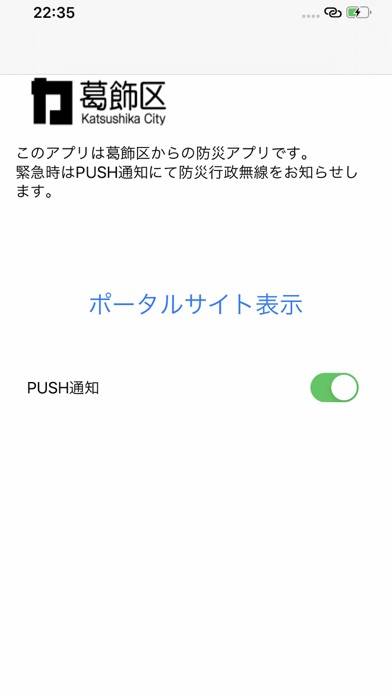- ポータルサイトへ移動でき、葛飾区から出ている防災情報が見られる