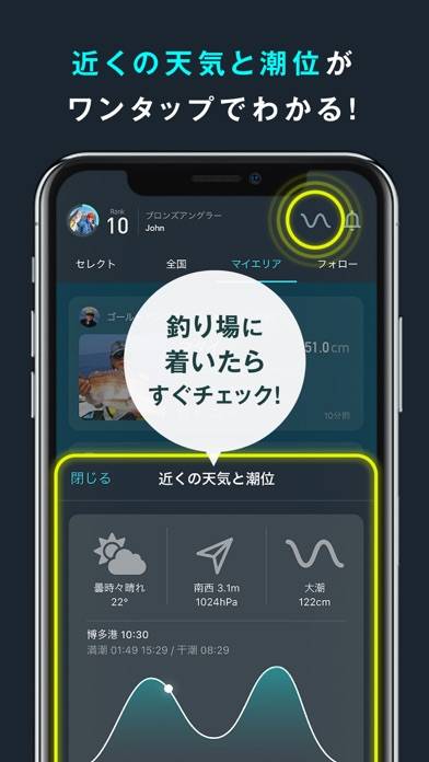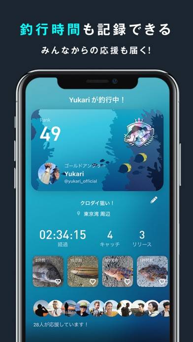 - 釣果投稿でのランキング表示や、クエスト達成での報酬などゲーム要素も