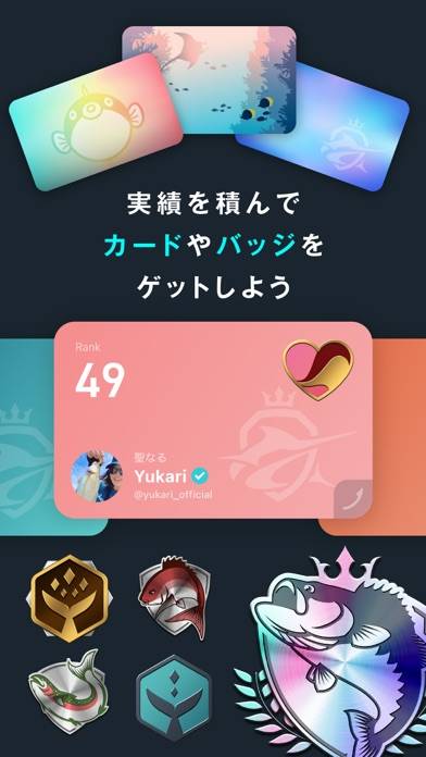 釣りをゲーム感覚で楽しめるのがこのアプリの特長です。特定の釣果を達成するクエストをこなすことで、アプリ内のアイテムを手に入れたり、勲章を獲得できたりします。また釣果によって経験値を獲得しランクを上げていくシステムもありますよ。