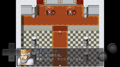 最初から終わりまでネタバレされっぱなしのRPG。勇者ハロルドが国王クロマークからの命を受け、魔王を倒すための冒険に出ます。このアプリのサブタイトル「最後の敵の正体は勇者の父」とあるように、王道RPGで本来ありえないはずのネタバレっぷりに翻弄されることでしょう。