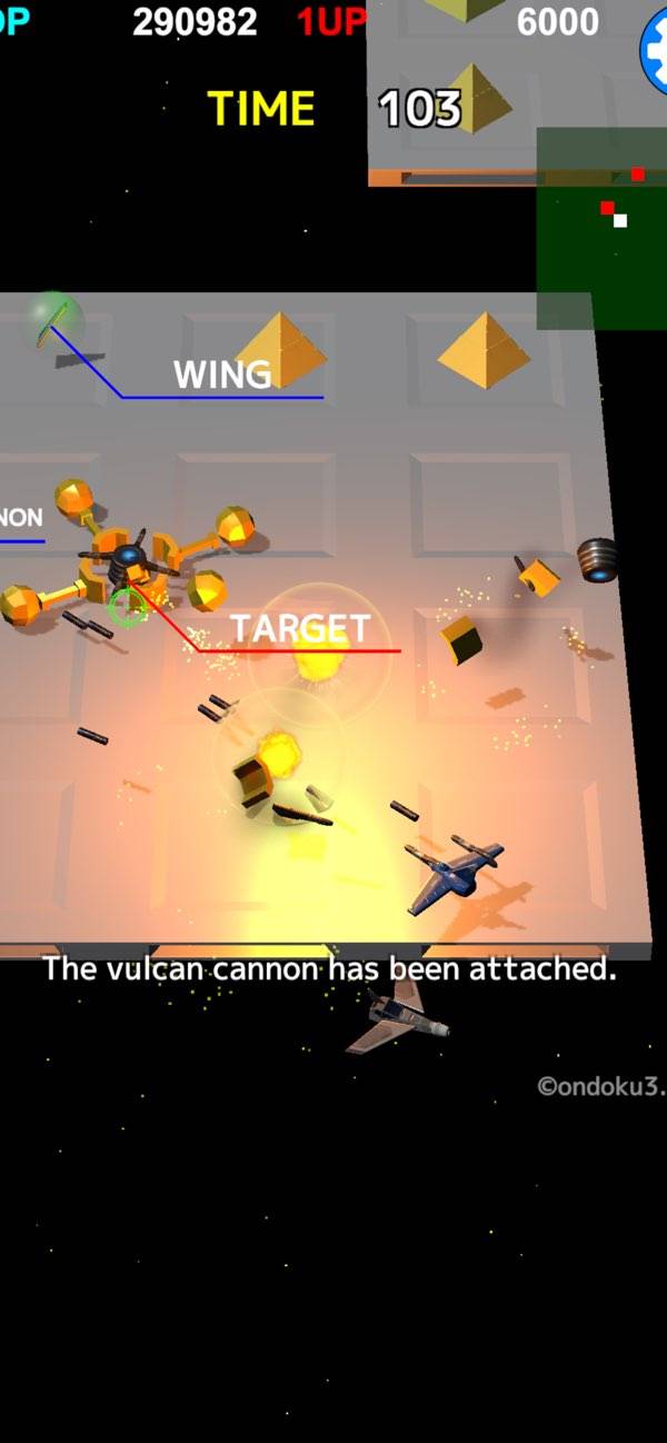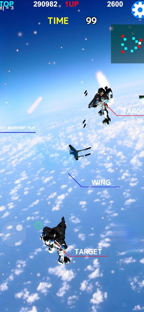 戦闘機を操作しながら、迫る敵機を破壊していく迫力満点のシューティング! 序盤はコアのみの戦闘機ですが、宇宙空間に散乱したパーツを集めることでエンジンやキャノンを拡張・強化できます。
