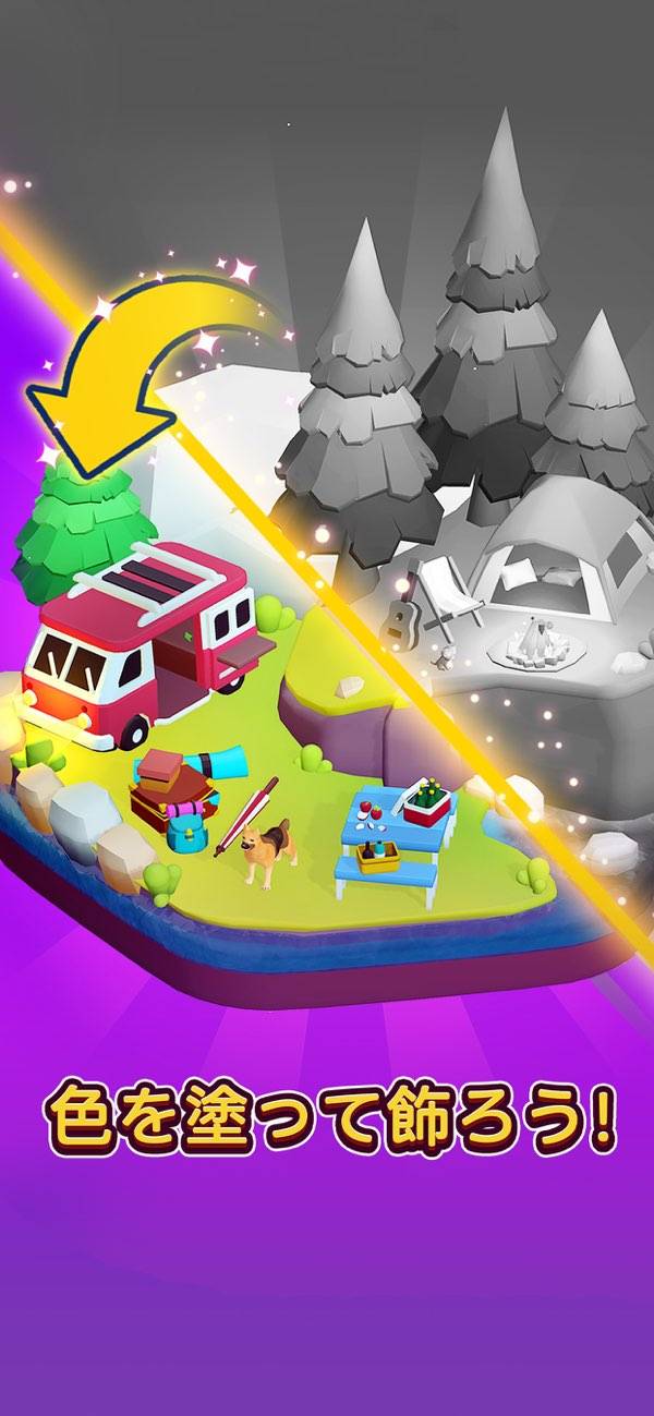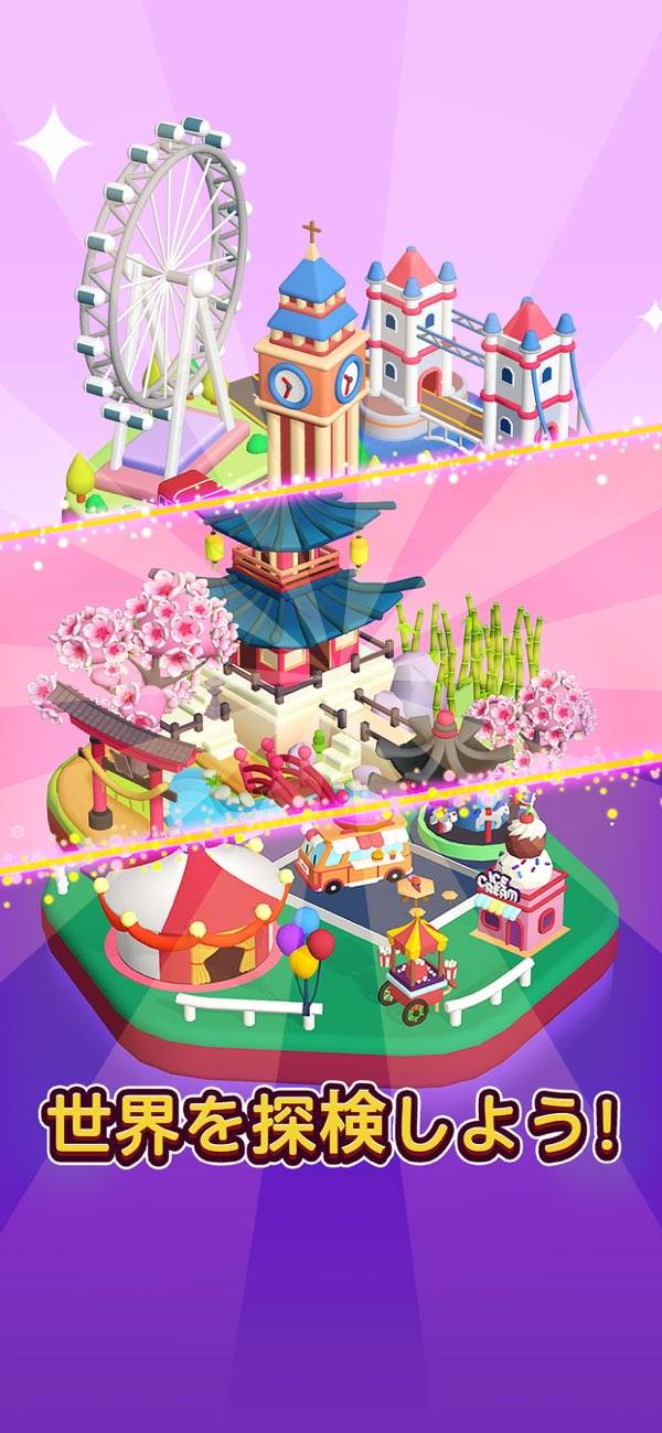 集めたヘキサゴンを使って、建物を作れます。徐々に島にある施設が充実していく達成感が味わえるでしょう。日本やロンドンをモチーフにした島もあり、おもちゃのようなかわいいビジュアルが魅力です。