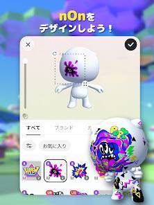 ガチャで手に入るステッカーを、アバターに貼り付けられます。手描きイラスト風、機械風、インクが飛び散ったものなど、多彩なステッカーを用意。アバターの顔や身体に自由に貼り付けて楽しめます。