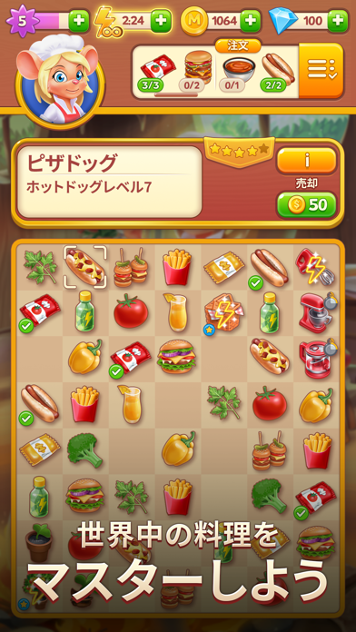 - 食べ物やキッチン用具をマッチ。いろんなアイテムが出現する楽しさ