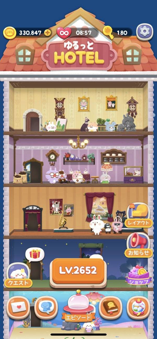 - ホーム画面でもあるホテルは自由にレイアウトを変えられる