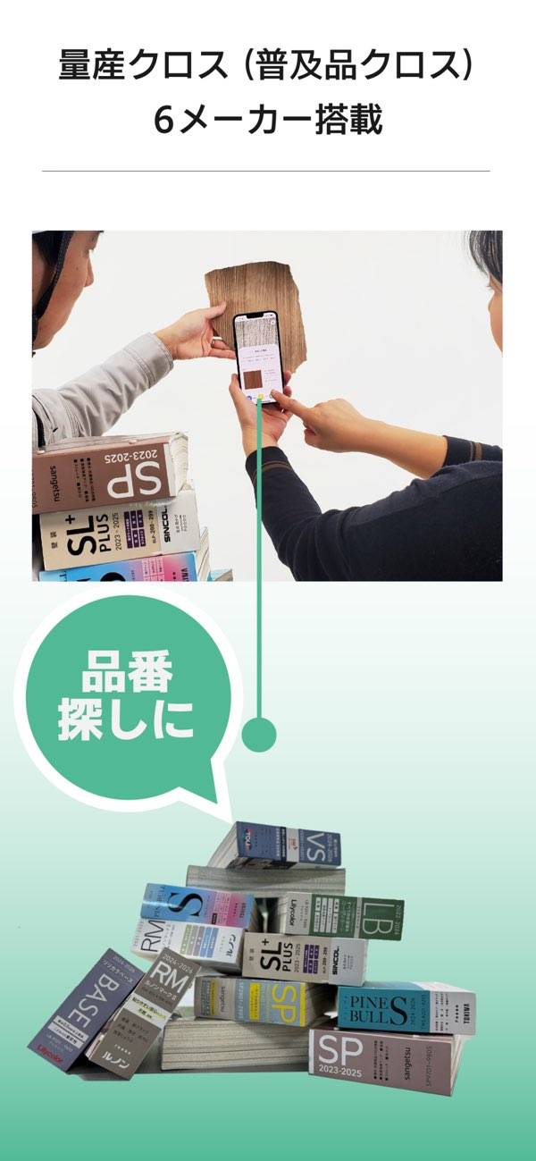 - 分厚いカタログを見る手間を削減。壁紙の品番・メーカーを瞬時に特定