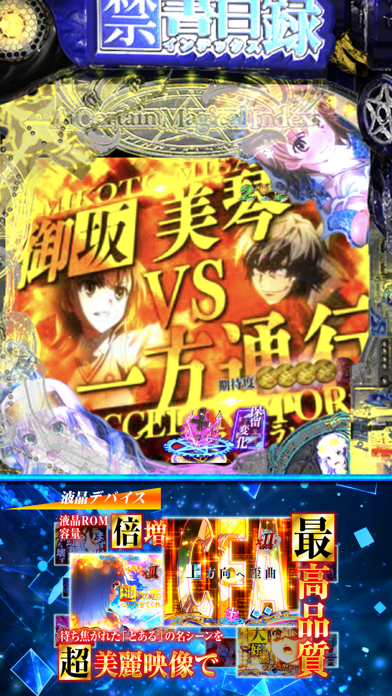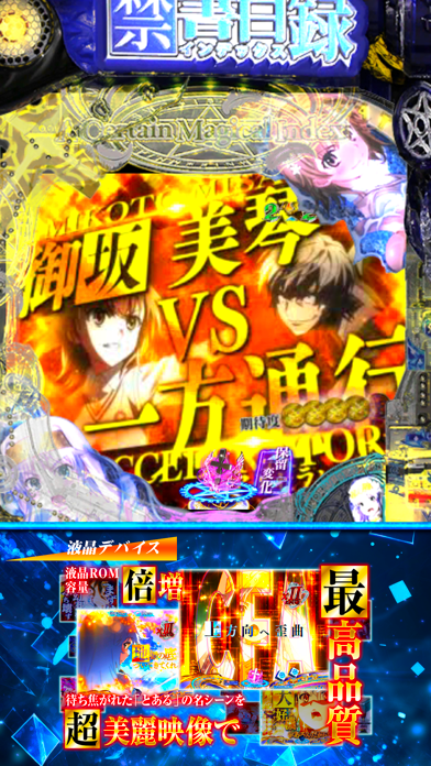 『Pとある魔術の禁書目録』の実機とほぼ変わらない演出を楽しめます。液晶の演出やギミックはもちろん、バイブまで再現! さらにアプリ独自のイラストなども収録されているため、原作ファンも楽しめます。