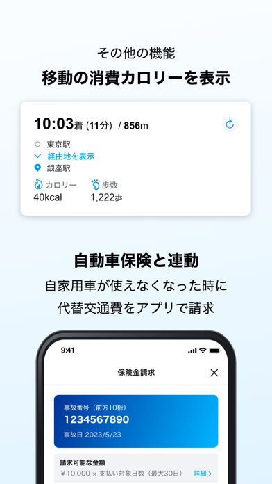 あらゆる交通手段をAIが瞬時に分析し、最適なルート案内してくれるアプリ。使い方は目的地を入力して検索するだけ。東京海上日動の保険サーピスと連携しており、自動車が使えない場合に公共交通機関の利用料をスムーズに請求できる機能を搭載しています。あなたの移動をもっと快適にしてくれます。