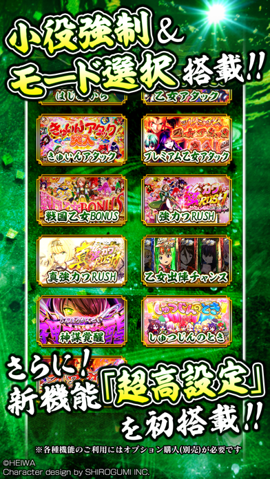 『L戦国乙女4 戦乱に閃く炯眼の軍師』のアプリ版です。シリーズ伝統のチャンスゾーン「乙女アタック」はもちろん新規の「オウガイバトル」も搭載し、楽しさアップ! スマホならではの遊技機能のオートプレイやウェイトカットなど、追加課金なしで使用できます。