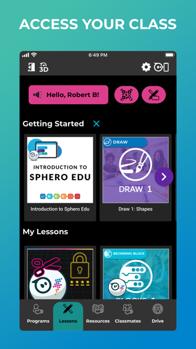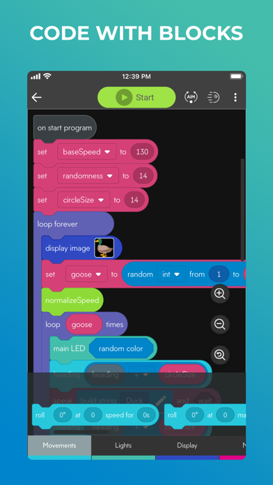 Sphero製品のロボットと連携して使えるプログラミング学習アプリ。このアプリは学校などの広いコミュニティはもちろん、家で親子そろって学習する際にも使えるよう設計されています。