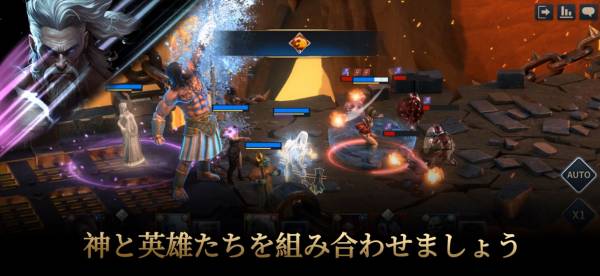英雄のレベル上げや装備を整えるだけでなく、神々との連携が勝利の鍵。キャラごとに存在するゲージが溜まったら、神を召喚し強力なスキルを使ってクリアを目指しましょう。
