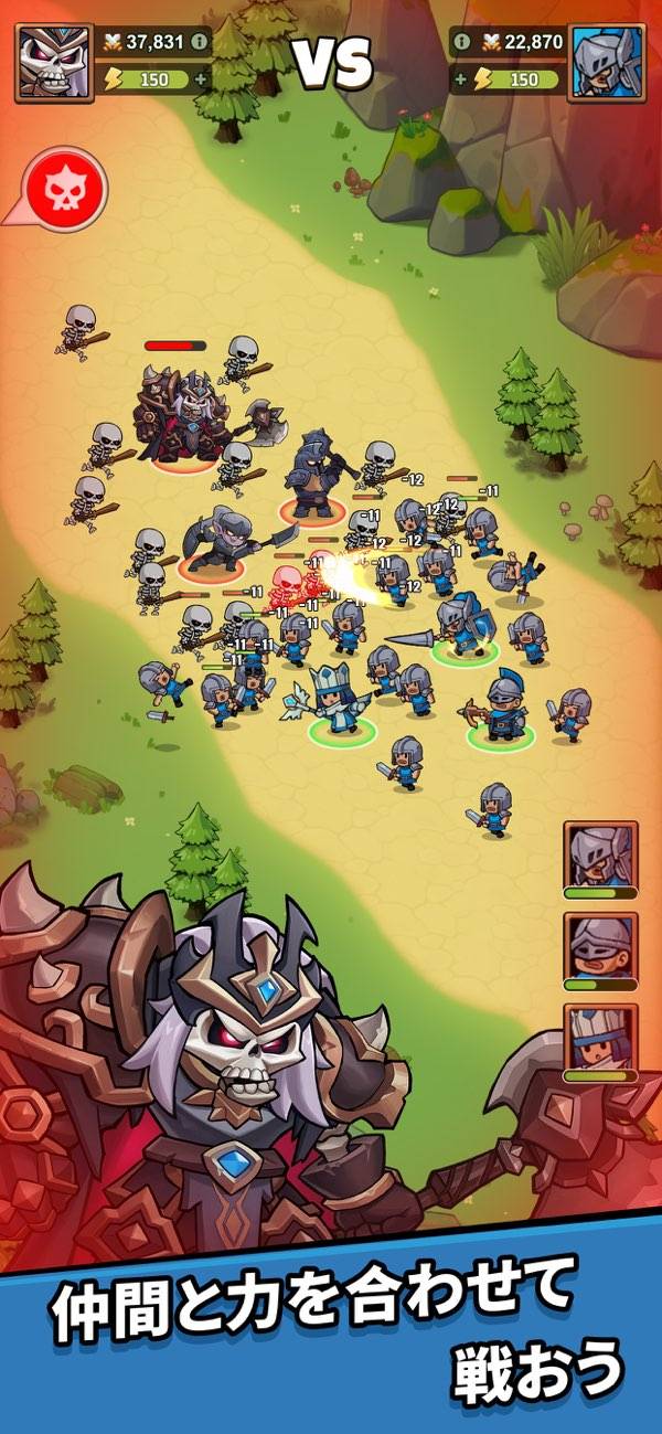 スキル演出やストーリーなどはなく見応えには欠けますが、コツコツとしたプレイ感がクセになります。基地がだんだんと大きくなっていく様子は達成感が味わえるでしょう。