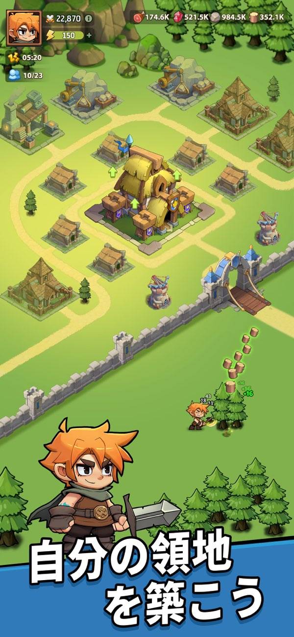 基地を大きくしながら広いフィールドを冒険するRPG。技や魔法の選択はせず、敵に近づくだけで自動で戦闘を行ってくれるのでラクに進行できます。