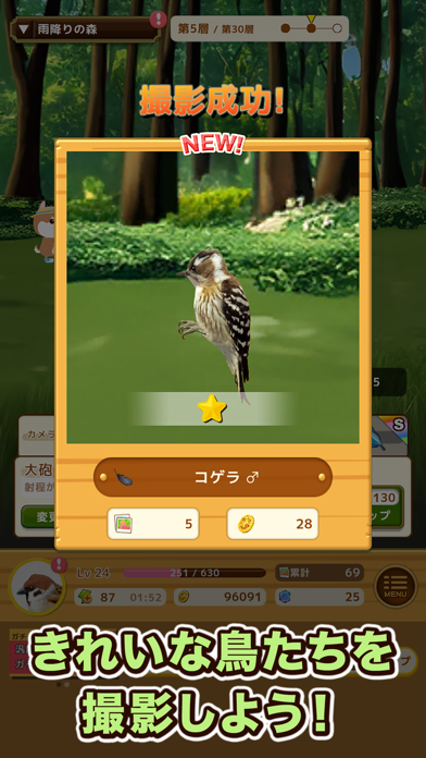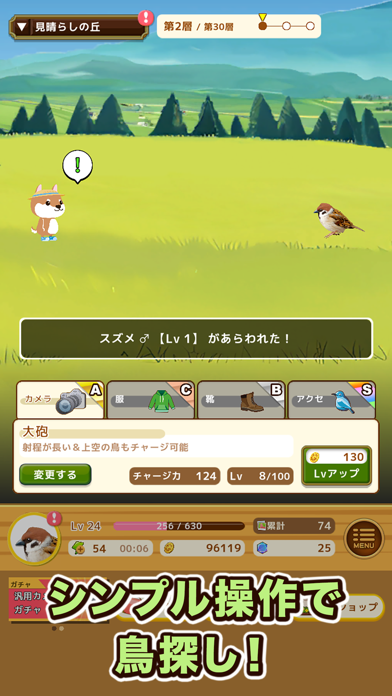 野鳥を撮影して図鑑を埋めていくカジュアルなRPGです。ボタンをタップするだけで移動や撮影などを自動で行ってくれるので手軽に遊べます。スズメやシジュウカラなどの定番の鳥のほか、珍しい鳥も……? バードウォッチングをしている気分で楽しめるでしょう。