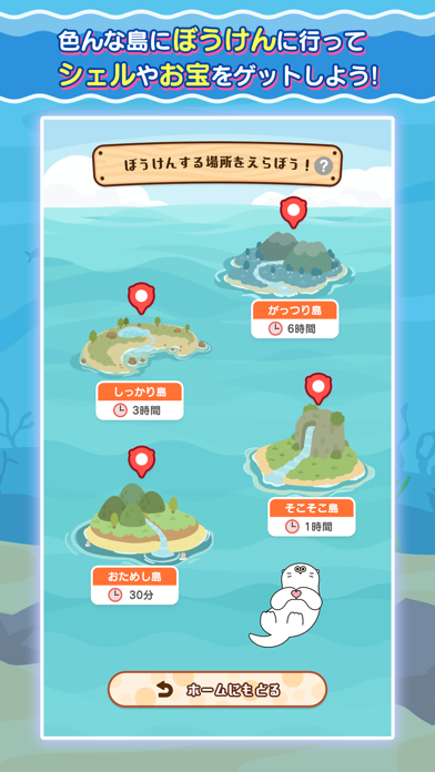 レッスンに必要なシェルはぼうけんで集められます。ぼうけんに出たラッきゅんは30分~6時間は帰ってこないので、しばらく放置しましょう。待っていられないときは、広告を見ると1日3回までぼうけんの時間をスキップできます。