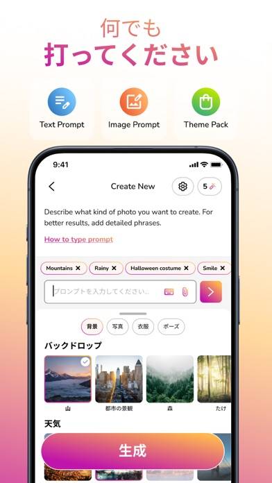 好みのテーマパックを選択して、好きなイメージの写真を生成できます。テーマパックはコスプレやオフィス風、スポーツマン風などさまざまなシチュエーションがあり、自分の雰囲気にマッチしたものを選択できます。