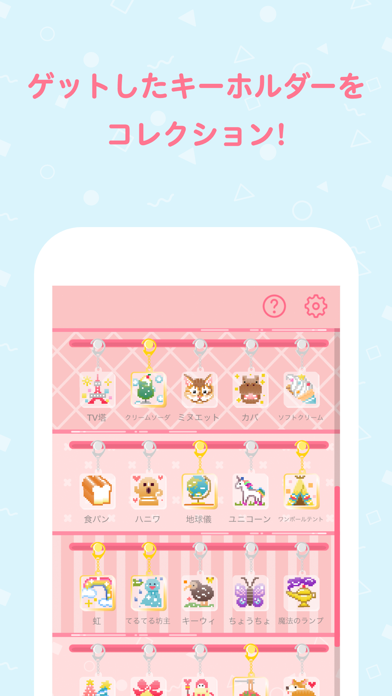 完成したイラストはキーホルダー風に変身。完成した様子がかわいらしく、見ていると癒やされます。雑貨やお菓子、動物などのモチーフが多く、「次のイラストは何だろう」と気になってプレイしてしまいます。