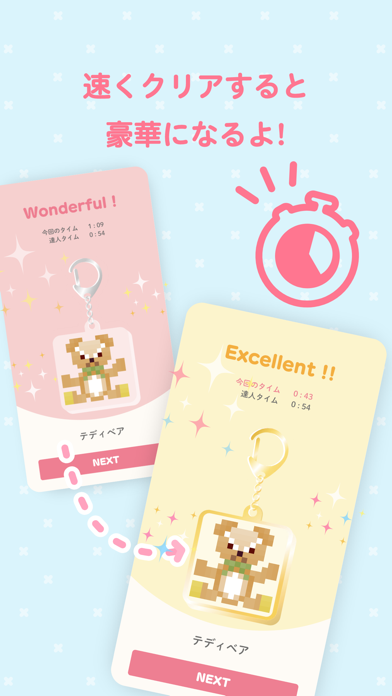 ステージクリアごとに完成したキーホルダーがぶら下がっていく演出があり、達成感が味わえます。