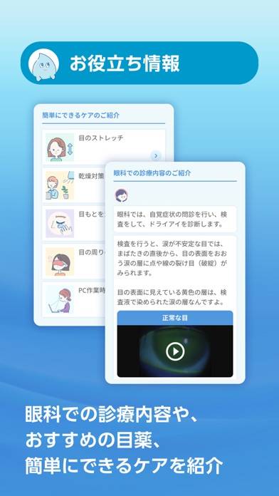 うるおい度に応じた対処法が紹介されています。薬局で売っている市販薬の紹介や、目のストレッチ方法なども掲載。眼科に行く時間がなかなかとれない人は、こちらを活用して経過を見るのもいいかもしれません。