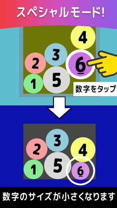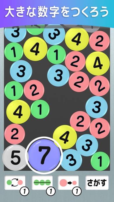 近くにある数字を順番につなげて数字を大きくしていきます。制限時間はなくスコアで競う方式で、より大きい数字を目指しましょう。つなげられるボールがなくなるとゲームオーバーになります。