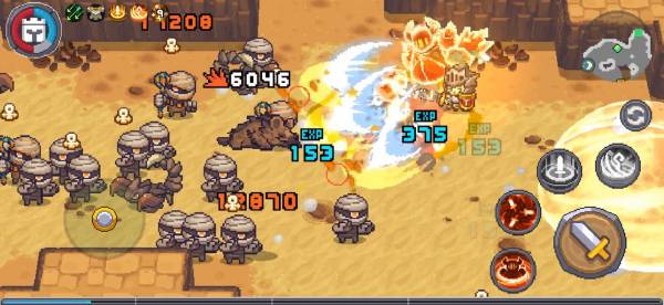 画面左側のパッドで移動、右側のボタンで攻撃します。剣アイコンの周りの4つのボタンはスキル・回復ボタンになっており、ポーションや攻撃スキルを自由に配置できます。ボタンが大きく操作もしやすいので、手軽にアクションが楽しめるでしょう。