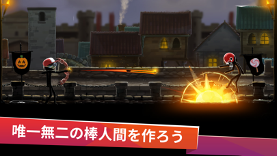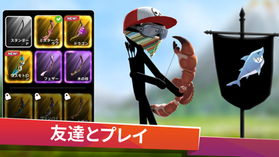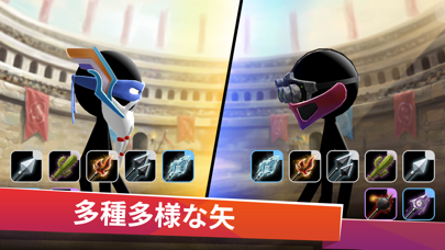画面を引っ張って交互に矢を撃ち合い、相手を先に倒したほうが勝利。障害物を避けつつ、相手に命中する角度や力加減を調整しましょう。ゲームは対人戦のみですが、自分に近いレベルのプレイヤー同士でマッチングが可能です。