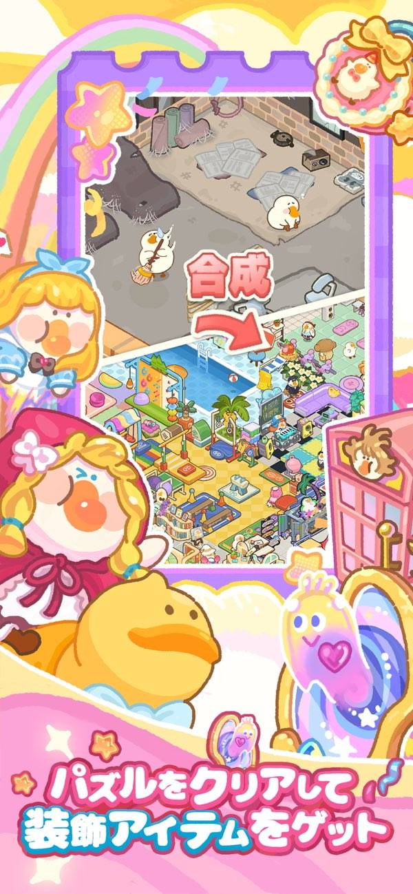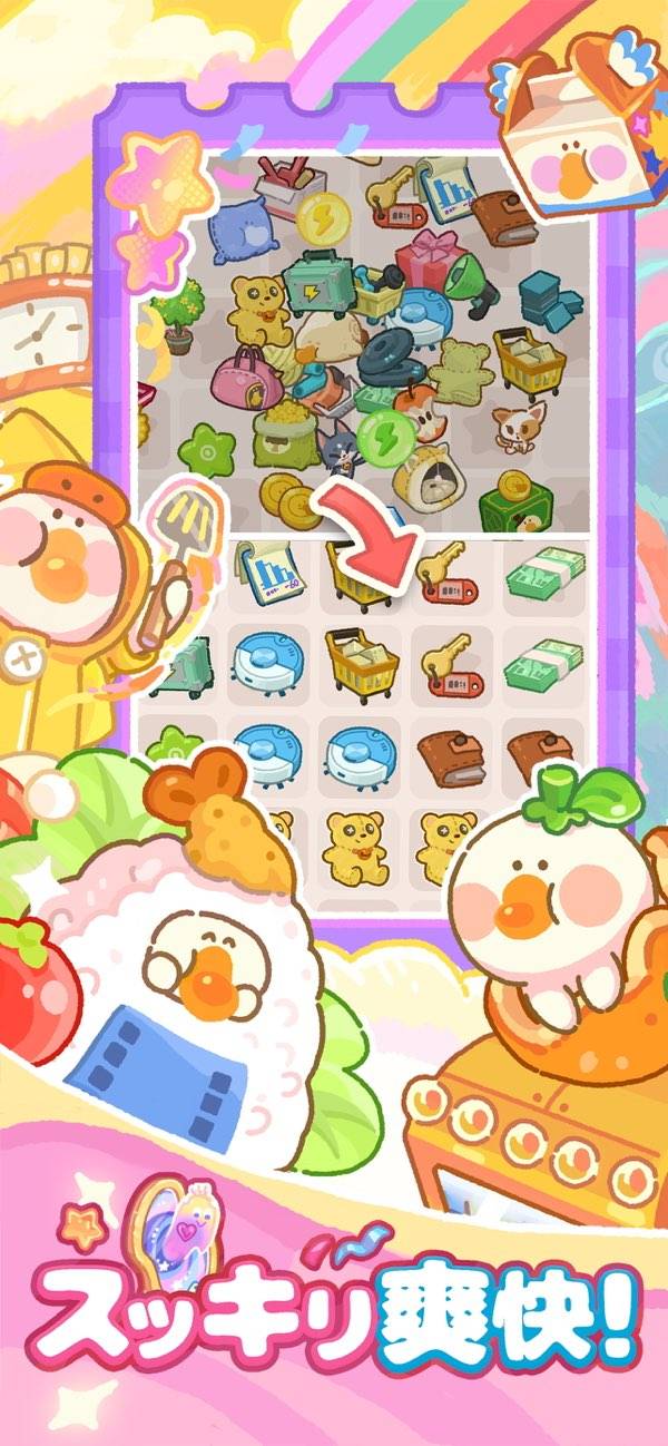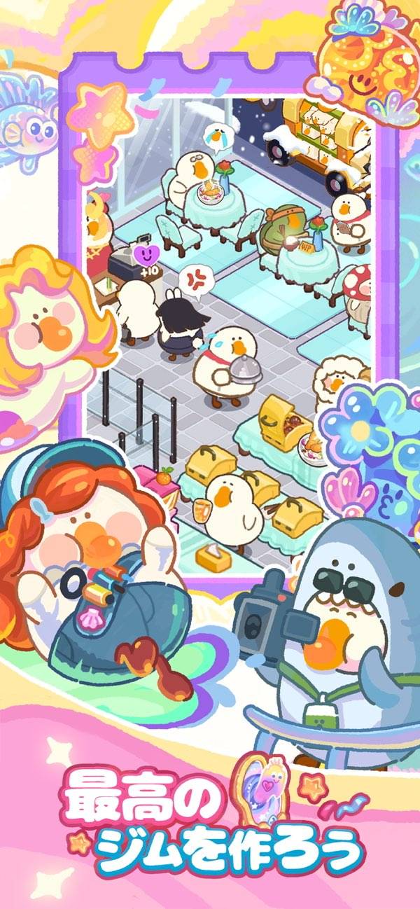 まるっとしたかわいいガチョウに癒やされるマージゲームです。オーダーに合わせてアイテムを作っていって、手に入れたお金でボロボロのジムを立て直していく感じ。かわいいキャラがお客さんとして来てくれるので、見ているだけでも楽しいです。