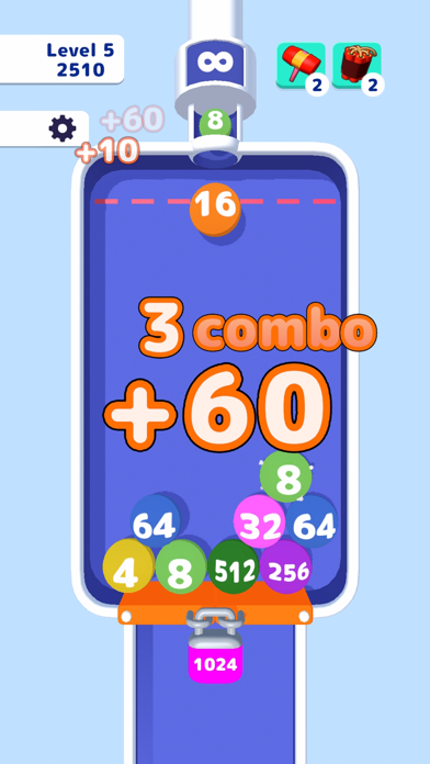 上から数字の書かれたボールを落とし、合成していく物理演算パズル。同じ数字のボールが接触するとその倍の数字のボールになるので、より大きい数字のボールを作っていきましょう。合成時には大きくボールが弾み、思わぬ連鎖が起きる爽快感が魅力です。