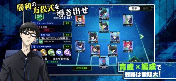編成面も本格的かつ『ブルーロック』ならでは。フォーメーションを決め選手を配置するのはもちろん、マイエゴイストといった独自のシステムも存在します。また原作の設定上、選手の得意ポジションはCFばかり。ここをどうカバーするかが手腕の見せ所!?